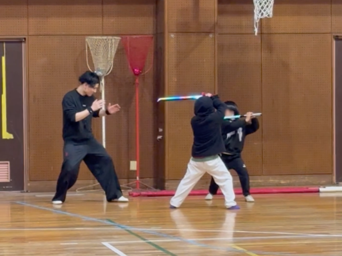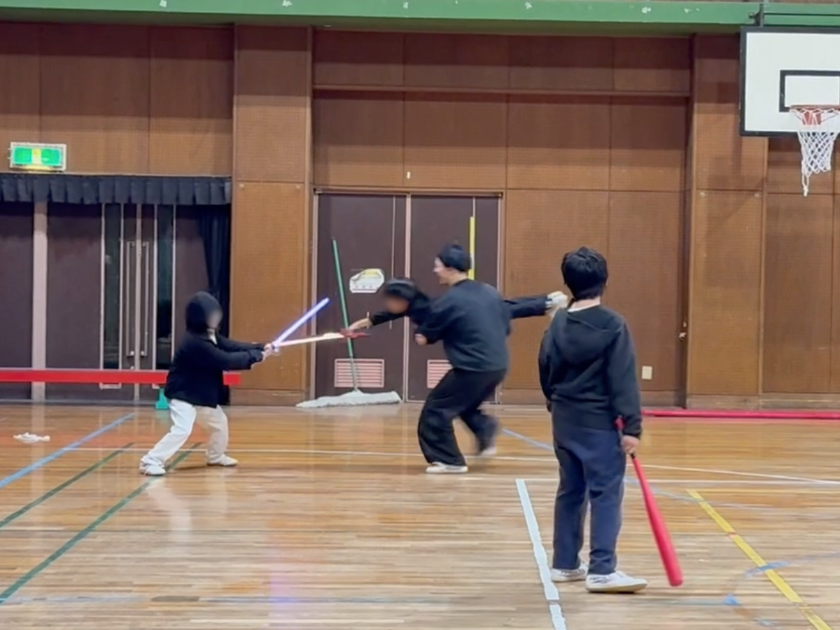 小さな生徒たちが元気いっぱいに飛びつき、武術の稽古では見せない無邪気な笑顔が弾けました。